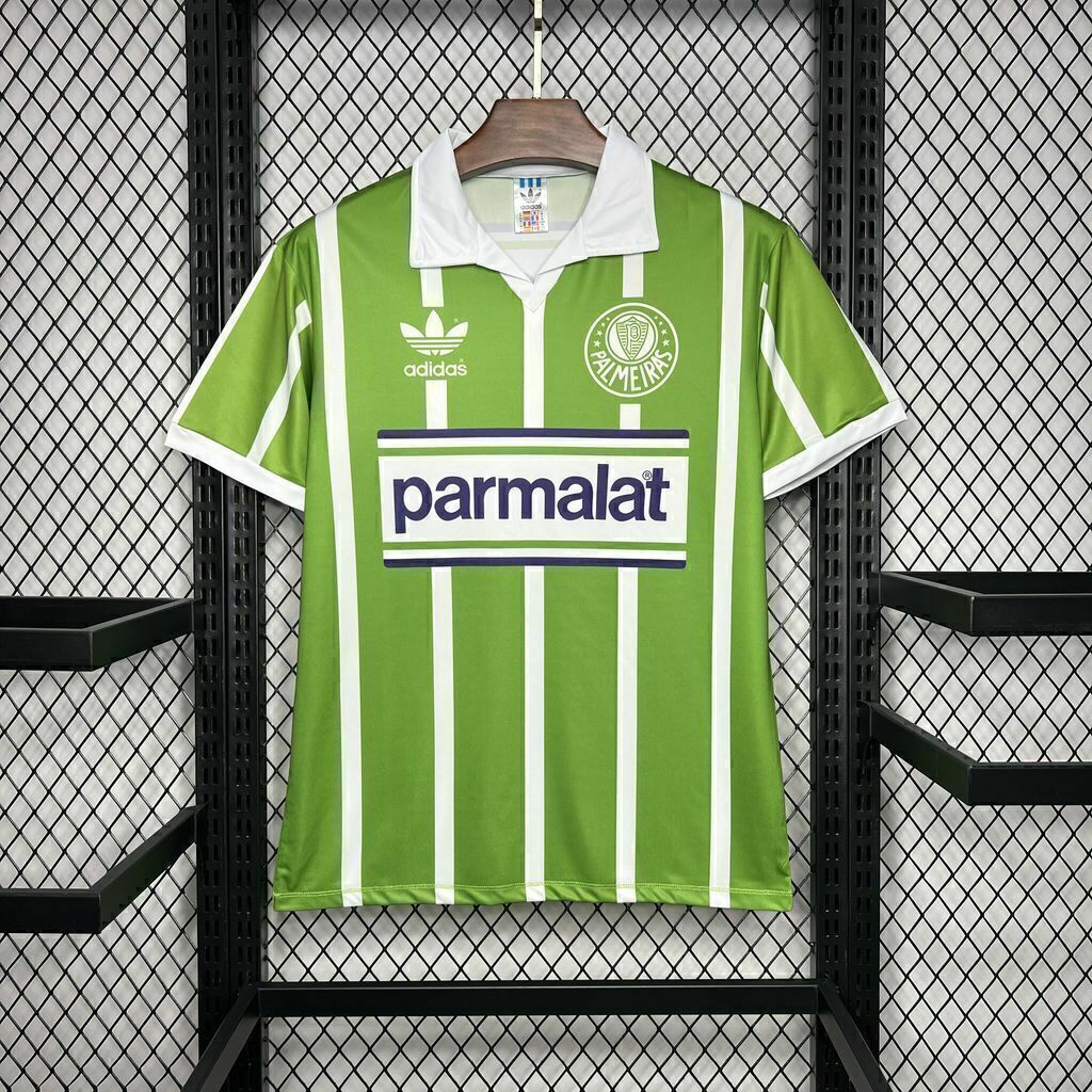 Este modelo resgata fielmente o design original da temporada de 1992, com o verde tradicional e detalhes que remetem à glória do Verdão.