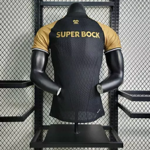 Esta camisa Sporting CP 23/24, em elegante preto e dourado, oferece uma versão Player com materiais de alta qualidade, garantindo conforto excepcional e durabilidade durante o uso, seja em campo ou nas arquibancadas.